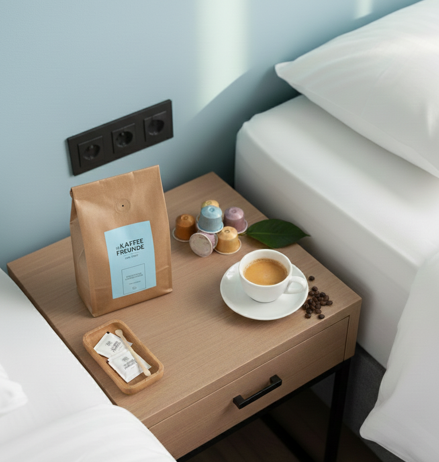 Mit fünf leckeren Geschmacksrichtungen haben wir für jede:n das Richtige. Egal ob du den Kaffee für deine Firma, Hotel oder Ferienunterkunft benötigst, deine Kolleg:innen und Gäste werden ihren Favoriten finden, und gerne wiederkommen.