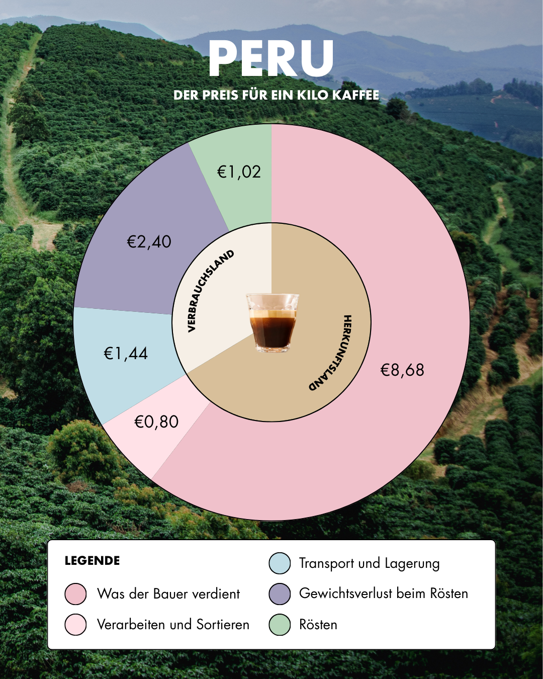 Unsere Partner in Peru erhalten 8,68 € pro Kilo Rohkaffee.
