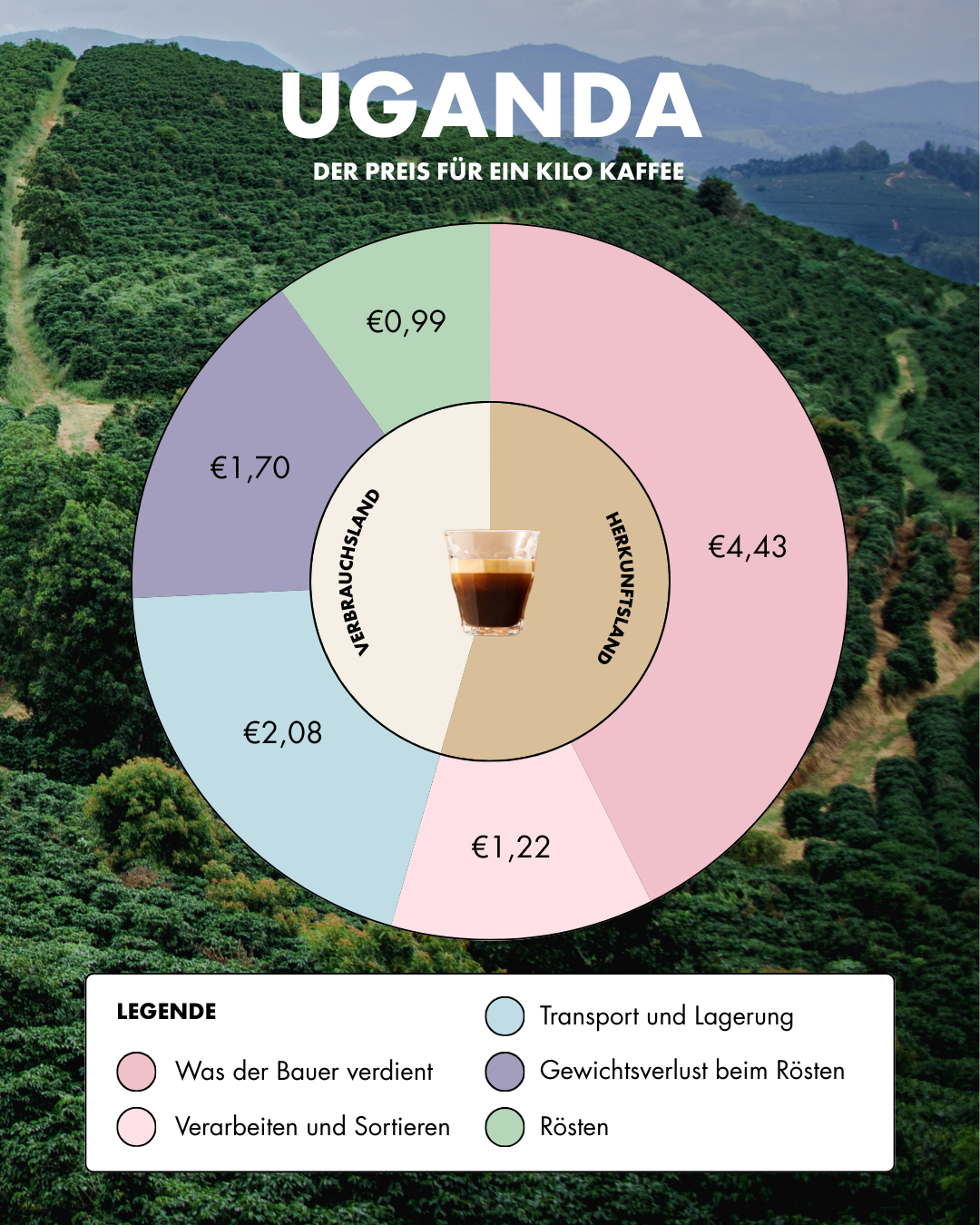 Unsere Partner in Uganda erhalten 4,43 € pro Kilo Rohkaffee.