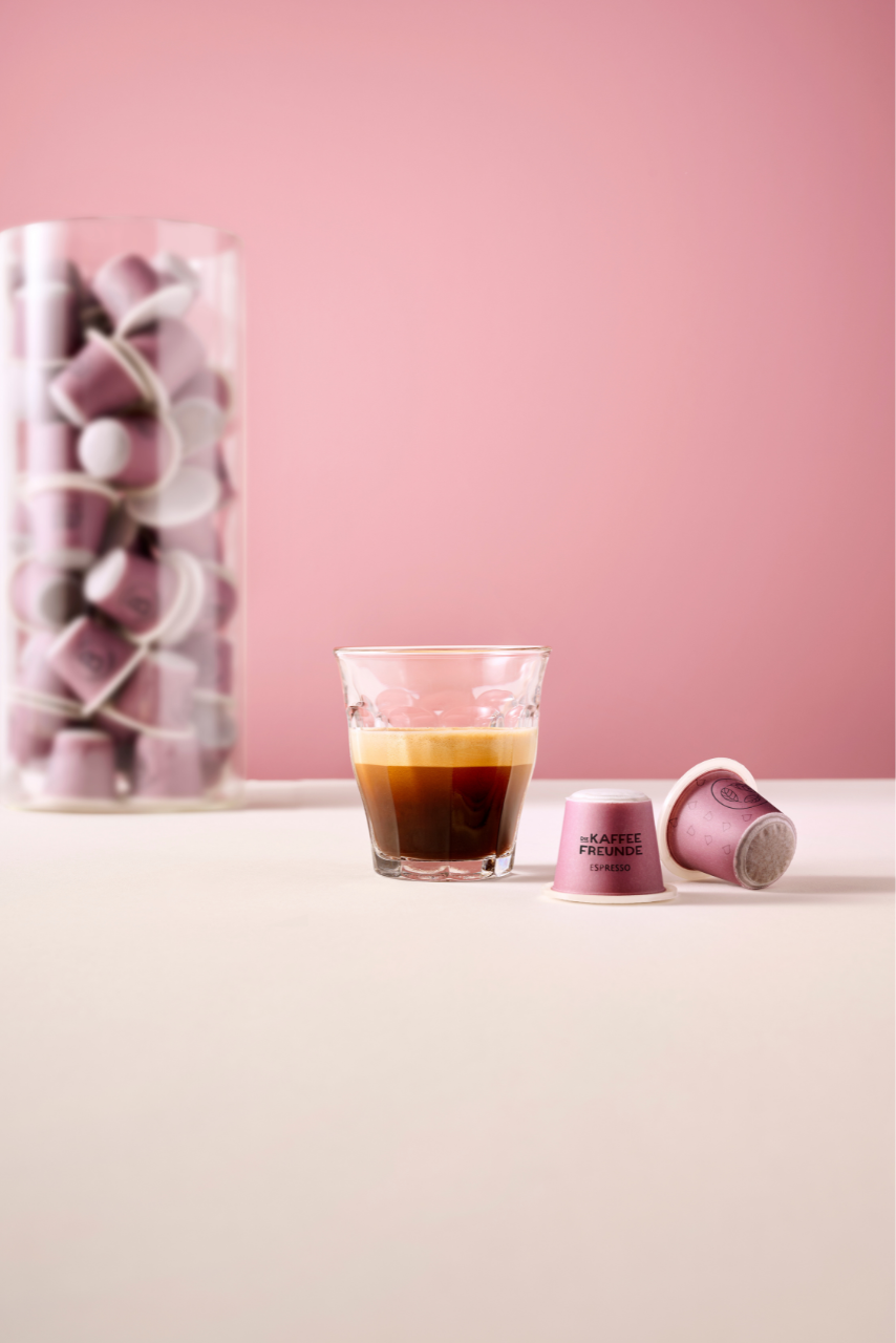 Entdecke unsere kompostierbaren Kaffeekapseln in unserem exklusiven Probierpaket! Von kräftigem Espresso bis sanftem Lungo.