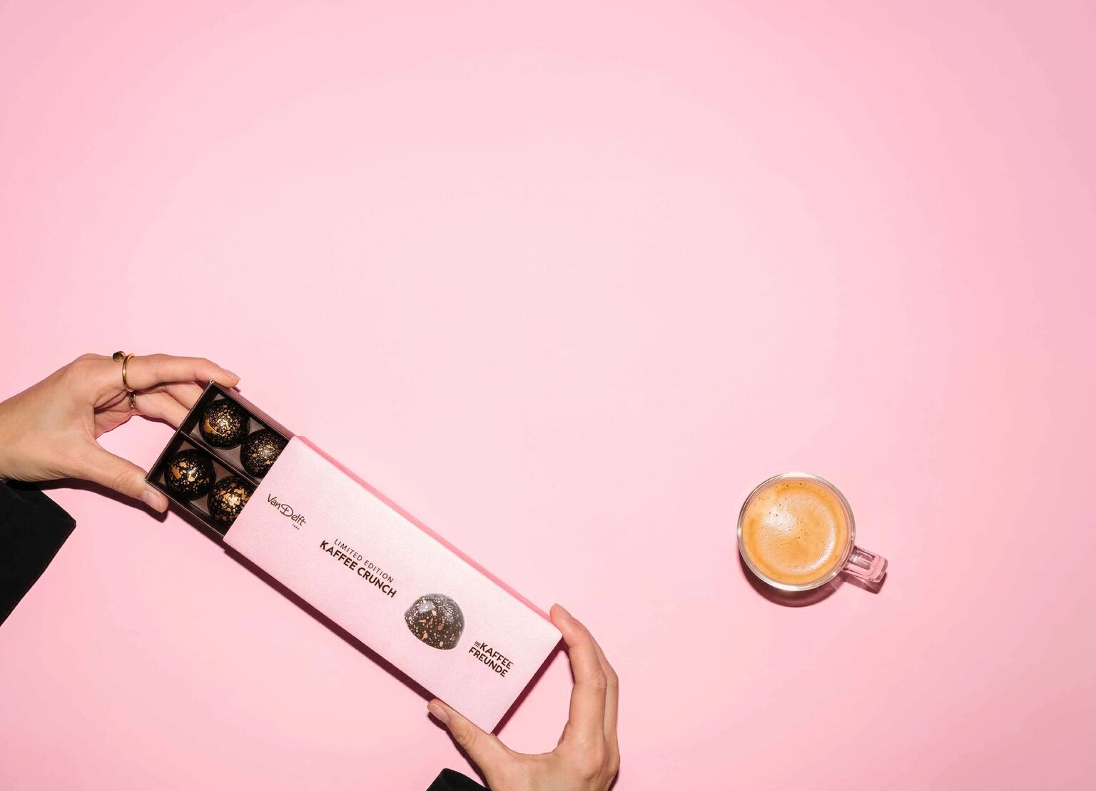 Manchmal trifft man auf jemanden mit derselben Liebe für Geschmack. Gemeinsam mit Van Delft haben wir die Koffie Crunch Bonbon kreiert: Milchschokolade, Spekulatius, Kaffee aus unseren Medium Roast Bohnen und ein knuspriger Biss aus gepufftem Reis. Handwerk, Charakter und eine echte Geschmacksexplosion in einem.